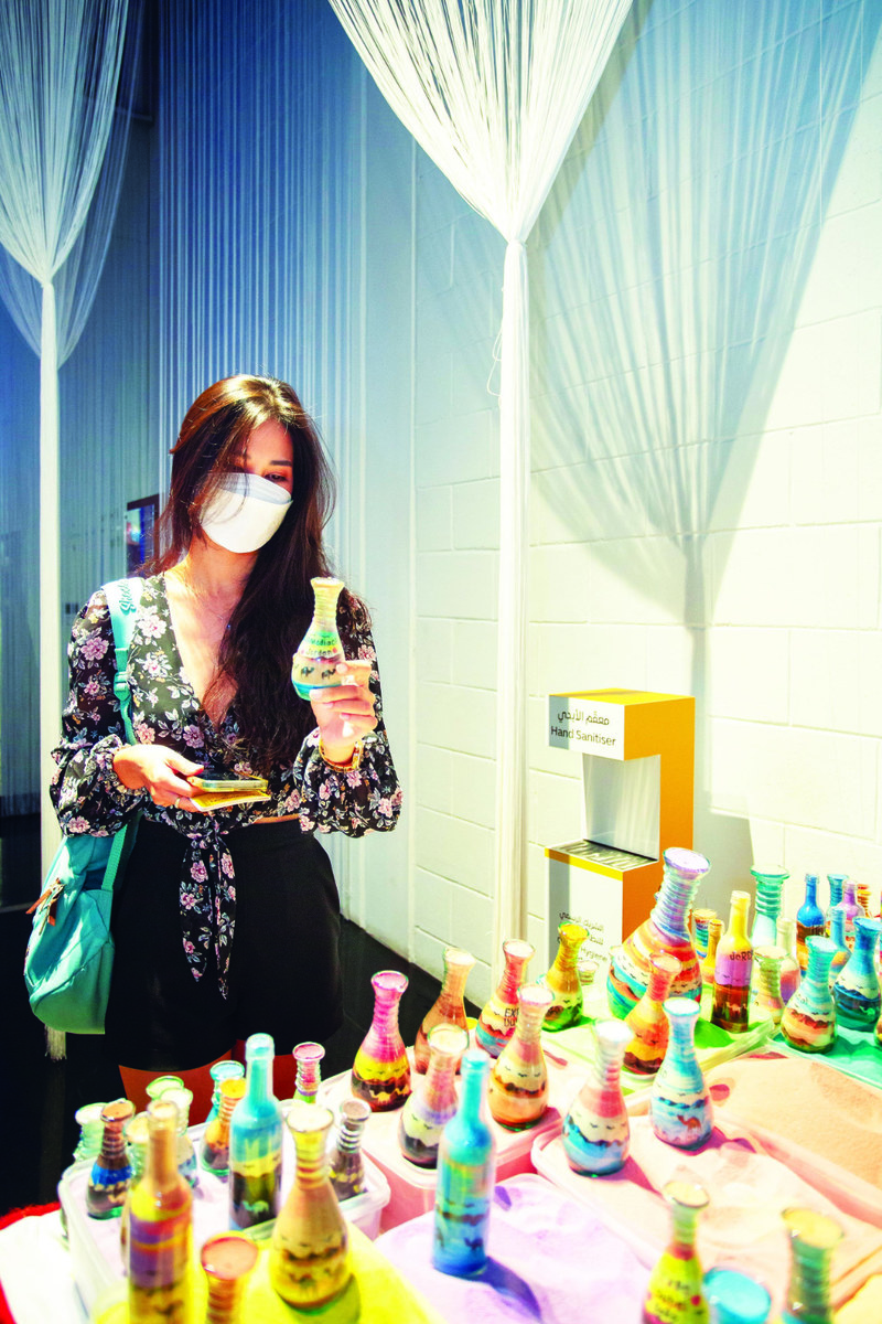 Artisans are on hand to explain the cultural significance of the products, including face masks adorned with the national colors, bracelets made from local turquoise and other natural stones, and tea trays painted and decorated in traditional styles.